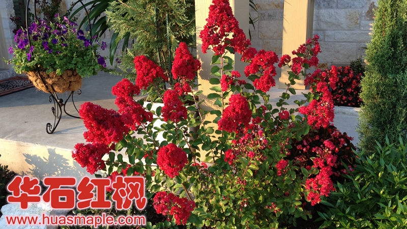 3、花最红、花簇最大:花簇最大可达24英寸,花量大且花瓣密集,花色艳丽。花在晴热天为猩红色,是珍贵的大红紫薇品种。7月开花,持续四月。